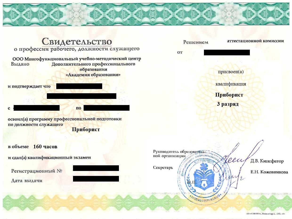 - Свидетельство о профессии рабочего, должности служащего установленного образца. Срок действия: бессрочно